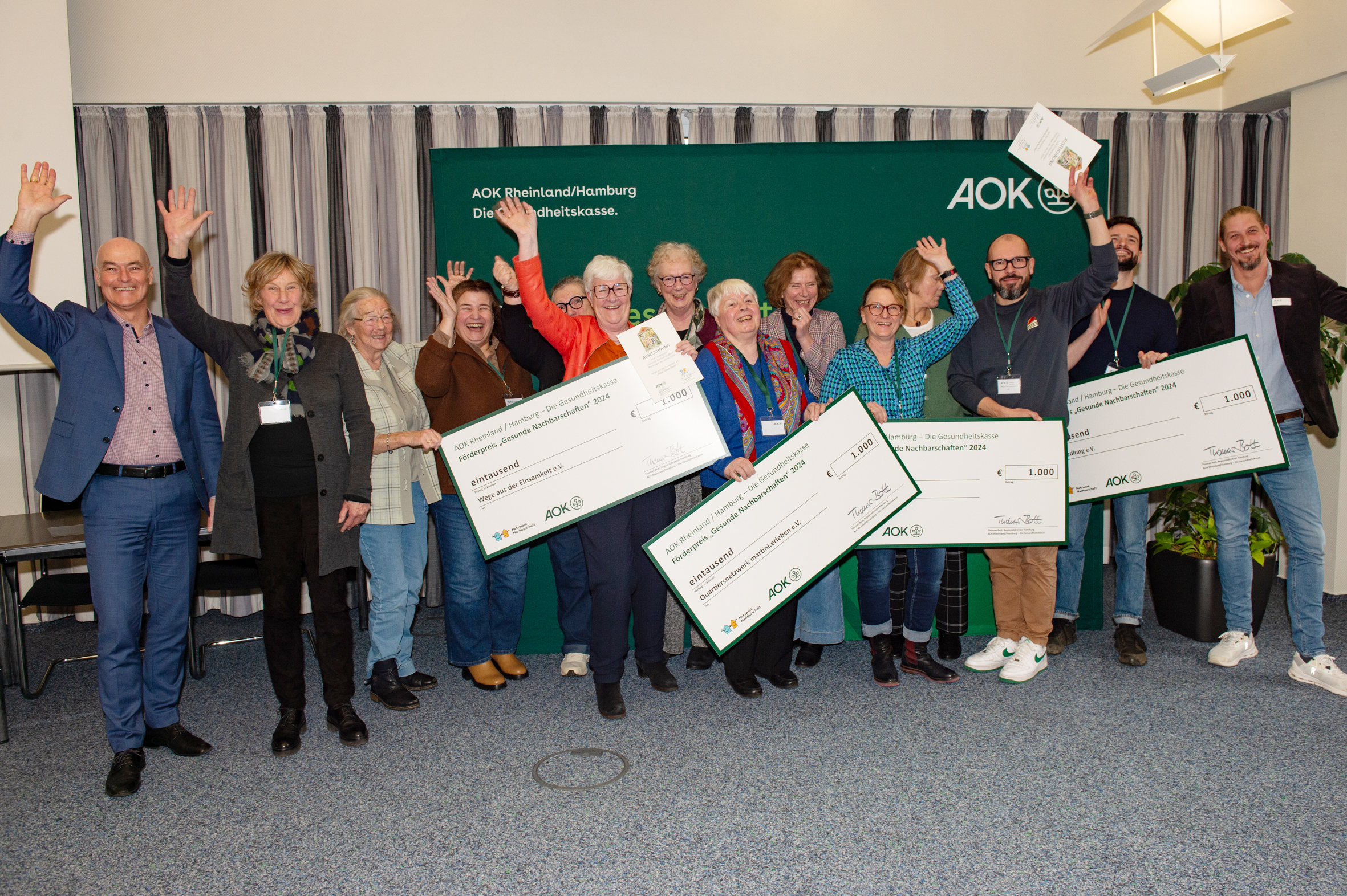 Hamburg, 12. Februar 2025 - Vier Nachbarschaftsgemeinschaften aus Hamburg freuen sich über den AOK-Förderpreis „Gesunde Nachbarschaften“. Sie erhalten jeweils 1.000 Euro Fördergeld für den Ausbau ihrer vorbildlichen Gemeinschaftsprojekte. Die offizielle Preisübergaben fanden in angeregter Runde bei der AOK in Wandsbek statt. Der Hamburger AOK-Regionadirektor Thomas Bott und Erdtrud Mühlens von Netzwerk Nachbarschaft gratulierten den Preisträgerinnen und Preisträgern.