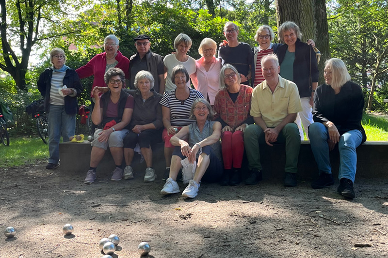2015 arbeiteten Freiwillige in einer Planungswerkstatt an der Idee, ein leicht zugängliches Bewegungsangebot im Eppendorfer Park aufzubauen. Das Ergebnis: „Boule im Park“. Von Ostern bis Oktober treffen sich zwei Gruppen je einmal pro Woche zum gemeinsamen Spiel. Freiwillig Engagierte stellen Kugeln bereit, erklären die Regeln und ermutigen auch Neulinge, gleich miteinzusteigen. Gerade für Menschen ab 60 Jahren schaffen sie mit dem Spiel an der frischen Luft einen leichten Zugang zu Bewegung, Gemeinschaft und Gesprächen – unmittelbar vor der eigenen Haustür. „Mit einem gestärkten Gemeinschaftsgefühl beugen wir Vereinsamung im Alter vor“, erklärt Susanne Holert-Retzlaff von „martini erleben“, „gleichzeitig unterstützt die körperliche Aktivität Koordination und Beweglichkeit der Teilnehmenden – das sind wichtige Faktoren für Gesundheit und Selbstständigkeit im Alter.“