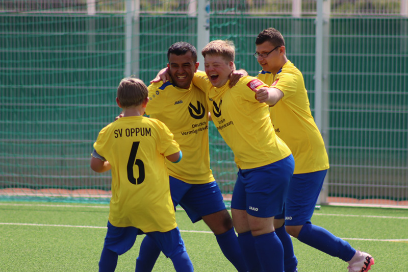 Nach Gesprächen mit Oppumer Eltern und Betroffenen erkannten die Vereinsmitglieder den großen Bedarf an wohnortnahen, niedrigschwelligen Bewegungsangeboten. Mit ihrem Projekt „Oppum kickt zusammen – Inklusion trifft Integration“ organisieren Vereinsaktive seit 2008 ein Bewegungsangebot, das sich speziell an Menschen mit Behinderung richtet und weit mehr als nur Fußball ist. Die Trainingsformen beinhalten die Vermittlung sportlicher Grundlagen, Koordinations- und Motorik-Übungen sowie individuelle Anpassungen, die allen Teilnehmenden Erfolgserlebnisse ermöglichen. Die SportlerInnen bauen so spielerisch ihre körperliche Fitness, soziale Kontakte und neue Freundschaften auf – und stärken damit ihr Selbstbewusstsein nachhaltig.