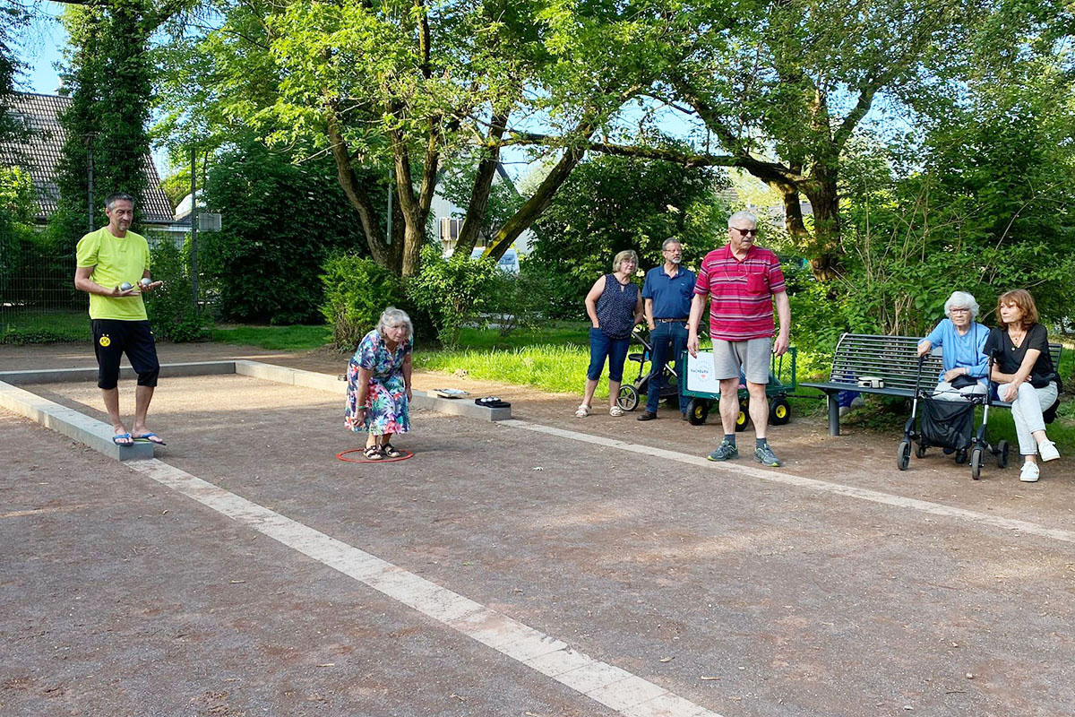 Für die Menschen in Erkrath-Hochdahl ist „Tag der Nachbarschaft“, so oft sie wollen. Denn die Initiative Nachbarn Hüttenstraße Hochdahl hat dort per Bürgerantrag von der Stadt Erkrath 2023 einen barrierefreien Bouleplatz einrichten lassen. Heute ist dieser ein zentraler Treffpunkt für Jung und Alt im Quartier. Um Pflege und Wartung des Platzes kümmert sich die Nachbargemeinschaft. "Die Nachbarinnen und Nachbarn kommen raus zum Spielen und unter Menschen“ freut sich Mit-Organisatorin Sonja Quick über den Erfolg des Freiwilligenprojekts. Jeder kann mitmachen oder sich auf eine der Bänke setzen und entspannt zuschauen.