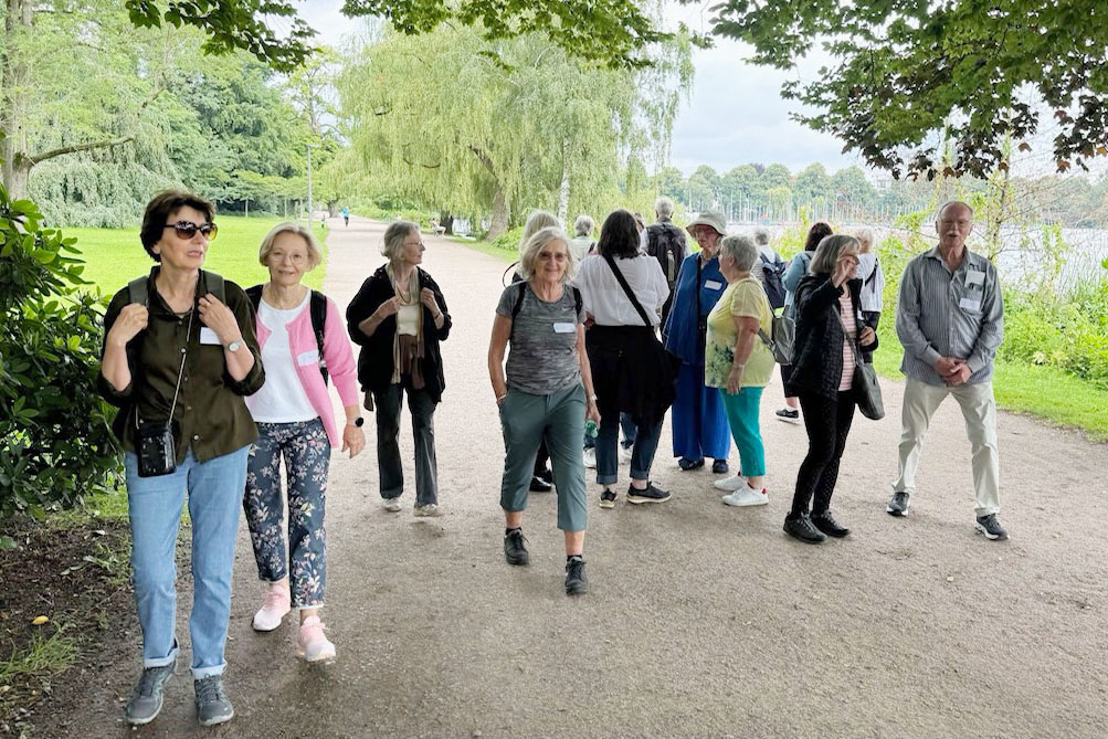 Wer nicht mehr gut zu Fuß ist, verliert oft die Lust auf Unternehmungen und in der Folge auch den Kontakt zur Nachbarschaft. Dagegen haben die OrganisatorInnen von „Wege aus der Einsamkeit e.V.“ aus Hamburg ein gutes Rezept: sie laden die Anwohnenden zu gemeinsamen Spaziergängen an der Alster ein und ermuntern auch bewegungseingeschränkte NachbarInnen sich anzuschließen. Die bis zu 50 Teilnehmenden wählen Tempo und Distanz selbst und machen entweder bei der „flotten Truppe“ oder der „Schneckengruppe“ mit. Im Café trifft man sich in geselliger Runde wieder. Für ihr vorbildliches Projekt sind die Vereinsmitglieder jüngst mit dem Förderpreis „Gesunde Nachbarschaft“ ausgezeichnet worden. „Wichtig ist, moderat anzufangen und alle Teilnehmenden gut mitzunehmen. Dafür sind Kleingruppen wunderbar geeignet.“, sagt Prof. Dr. Ingo Froböse, Sportwissenschaftler und Jury-Mitglied beim AOK-Förderpreis. „Man geht vor der Haustür los, man trifft sich, man geht zusammen ein Stück. Das ist eine tolle Nachbarschaftsgeschichte!“
